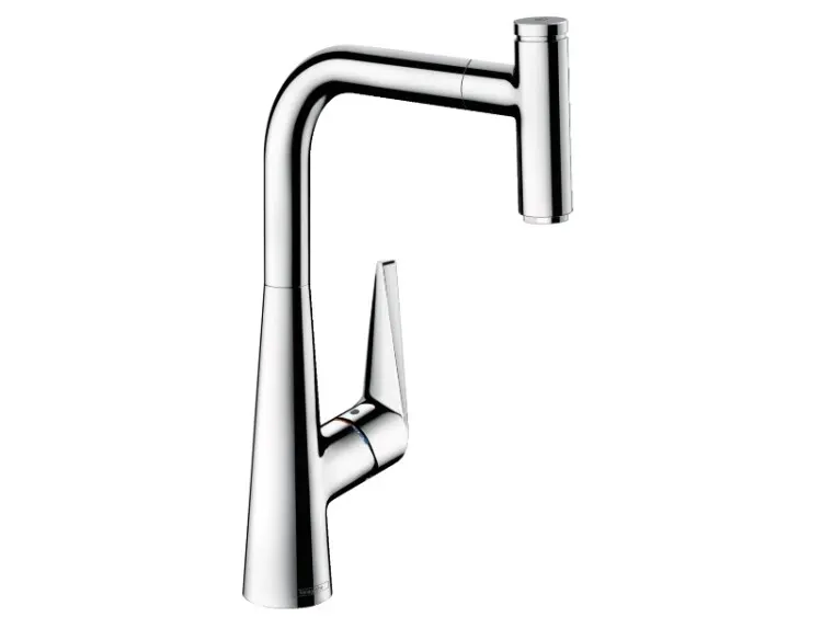 Смеситель для кухни, Hansgrohe, Talis Select M51, sBox, тип открывания воды-однорычажный, тип регулирования воды-керамический картридж, монтаж-на раковину/столешницу, отверстия для монтажа-1, высота, мм-401, вынос излива, мм-220, тип излива-выдвижной, поворотный на 110° или 150°, 1 режим струи, кнопка Select для комфортного включения/выключения воды, магнитная система крепления душа MagFit, тип подводки-гибкая, стандарт подвода воды-3/8", цвет-хром арт-73853000