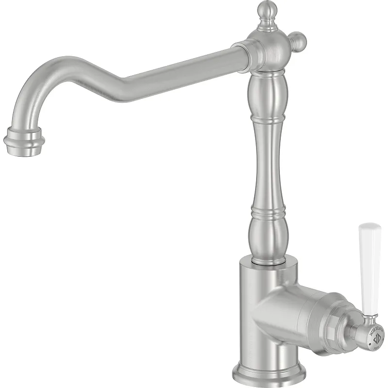 Смеситель для кухни Jacob Delafon Cleo 1889 E24317-VS.Характеристики: Цвет: матовая сталь. Материал: латунь. Управление: однорычажное. Излив: поворотный. Механизм: керамический картридж. Материал ручки: керамика. Стандарт подводки: 1/2. Монтаж: на мойку; на столешницу. В комплекте поставки: Смеситель. Комплект креплений. Система быстрого монтажа. Гибкая подводка.