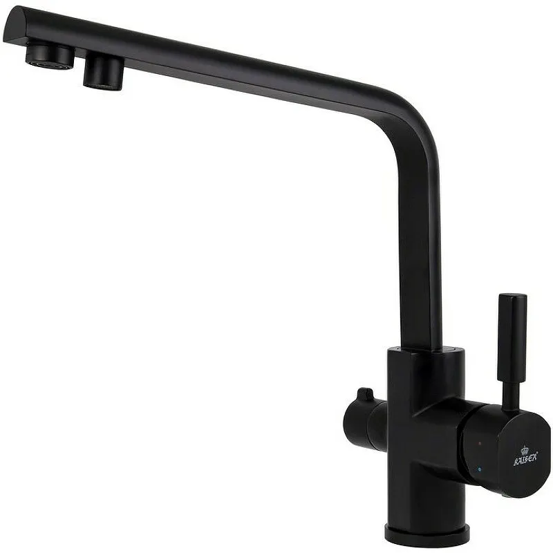 Смеситель для кухни Kaiser Decor 40144-9 с краном для питьевой воды.Характеристики: Цвет: черный матовый. Материал: латунь. Управление: однорычажное. Механизм: керамический картридж Sedal 35 мм. Излив: поворотный, с каналом для питьевой воды. Аэратор. Стандарт подводки: 1/2. Тип подводки: гибкая. Монтаж: на мойку / на столешницу. Отверстий для монтажа: 1. Крепление: шпилька одинарная. В комплекте поставки: Смеситель для кухни. Гибкая подводка. Комплект креплений. Инструкция.