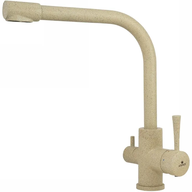 Смеситель для кухни Kaiser Merkur 26044-16 с краном для питьевой воды.Характеристики: Цвет: песочный. Материал: латунь. Управление: однорычажное. Механизм: керамический картридж Sedal 35 мм. Излив: поворотный, с каналом для питьевой воды. Аэратор. Стандарт подводки: 1/2. Тип подводки: гибкая. Монтаж: на мойку / на столешницу. Отверстий для монтажа: 1. Тип крепления: латунная гайка. В комплекте поставки: Смеситель для кухни. Гибкая подводка. Комплект креплений.