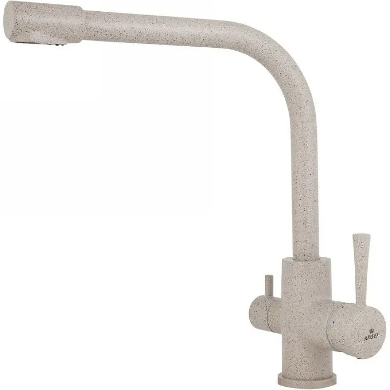 Смеситель для кухни Kaiser Merkur 26044-8 с краном для питьевой воды.Характеристики: Цвет: песочный. Материал: латунь. Управление: однорычажное. Механизм: керамический картридж Sedal 35 мм. Излив: поворотный, с каналом для питьевой воды. Аэратор. Стандарт подводки: 1/2. Тип подводки: гибкая. Монтаж: на мойку / на столешницу. Отверстий для монтажа: 1. Тип крепления: латунная гайка. В комплекте поставки: Смеситель для кухни. Гибкая подводка. Комплект креплений.