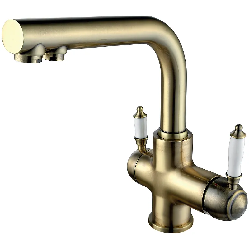 - Элегантный дизайн: Глянцевая бронзовая поверхность и ретро-стиль придают смесителю благородный вид, который украсит любую кухню.