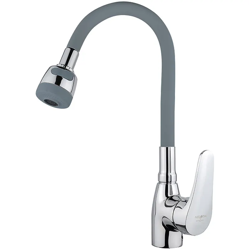 Смеситель для кухни Melodia della vita Ostessa MDV40616Gray с хромированным покрытием и серым оттенком станет стильным и функциональным дополнением для вашей кухни. Этот кухонный смеситель с гибким изливом идеально подходит для повседневного использования, обеспечивая удобство и комфорт при готовке и уборке.