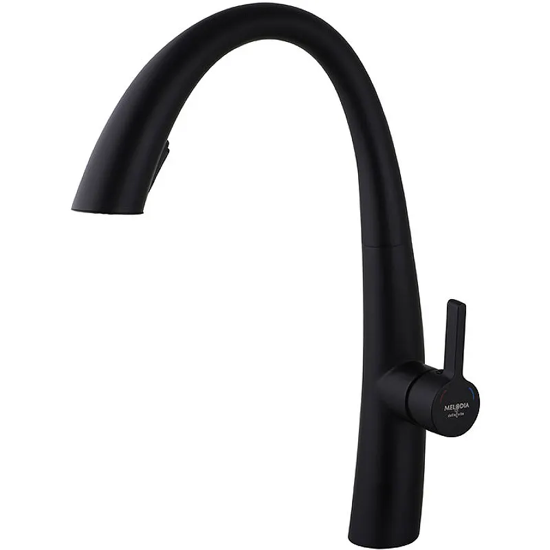 Купить смеситель для кухни Melodia della vita легко и удобно. Этот черный матовый смеситель для кухни сочетает в себе стиль и функциональность, создавая профессиональную зону на вашей кухне.