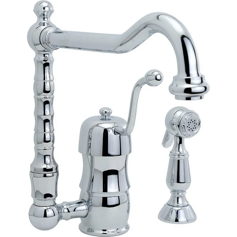 Смеситель для кухни Migliore Queen Nostalgia 18250.Характеристики: Цвет: хром. Материал: латунь. Механизм: керамический картридж. Управление: однорычажное. Излив: поворотный. Стандарт подводки: G 1/2. Тип подводки: гибкая. Защита от обратного потока. Совместимость с проточным водонагревателем. Монтаж: на мойку, столешницу. Отверстий для монтажа: 2. Аэратор. В комплекте поставки: Смеситель. Гибкая подводка. Комплект креплений. Ручной выдвижной душ.