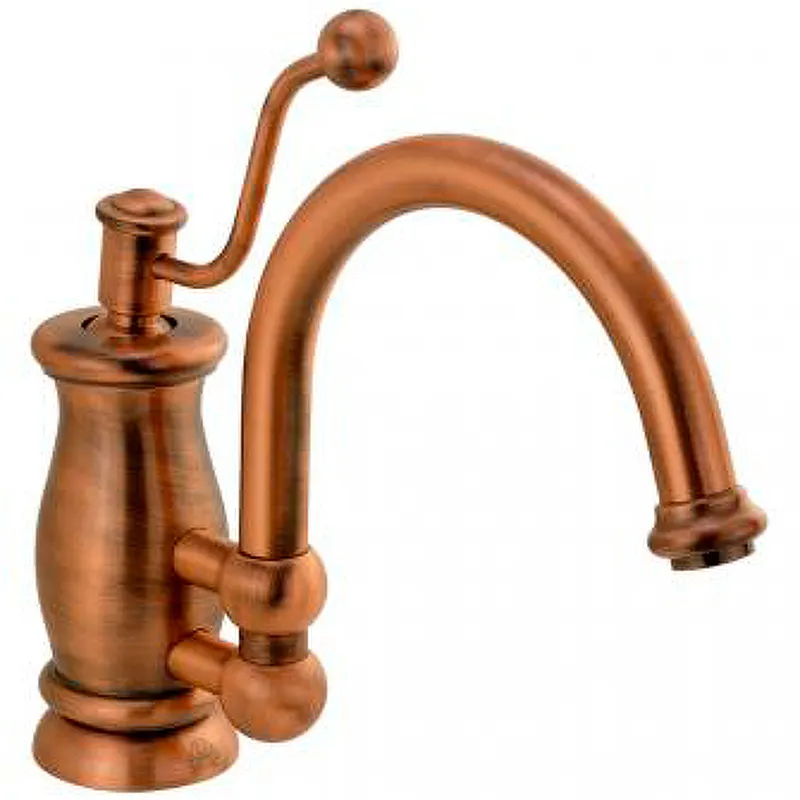 Смеситель для кухни Migliore Vivaldi 18304.Однорычажный смеситель с поворотным изливом и аэратором.Характеристики: Монтаж: на мойку, на столешницу. Отверстий для монтажа: 1. Стандарт подключения: G 1/2. Гибкая подводка. Материал: высококачественный латунный сплав, который обеспечивает прочность, устойчивость к влаге и температурным перепадам. Покрытие: специальное лаковое покрытие защищает внешнюю часть смесителя от быстрого износа. Цвет: медь. Однорычажная система управления. Механизм: керамический картридж. Оригинальная ручка выполнена из металла. Поворотный излив с аэратором. Защита от обратного потока. В комплекте поставки: Смеситель. Гибкая подводка. Крепление.