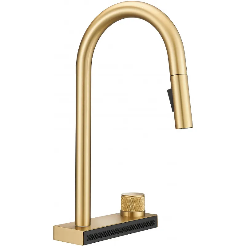 - Современный дизайн: Золото брашированное покрытие придает смесителю элегантный и современный вид, подходящий для любой кухни.