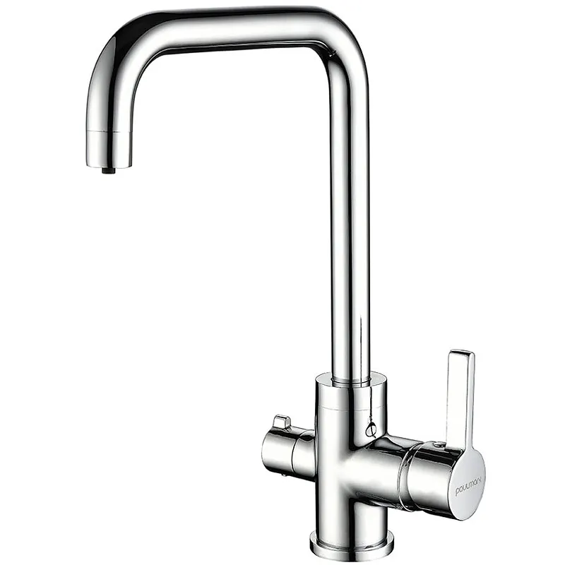 Высокий смеситель для кухни Paulmark Logas Lo213021-CR однорычажный, с поворотным изливом, с возможностью подключения фильтра питьевой воды. Фильтрованная вода подается через отдельные трубку и аэратор. Латунь высокого качества. Многослойное, стойкое к истиранию матовое покрытие. Долговечный керамический картридж. Съемный пластиковый аэратор. Простой монтаж.Технические данные: Цвет: хром. Поверхность: глянцевая. Материал: латунь. Поворотный излив. Встроенный кран для питьевой воды. Подводка: гибкая, G 1/2. В комплекте поставки: смеситель; гибкая подводка; переходник цанга G 1/2 для подключения фильтра; усиленный комплект креплений.