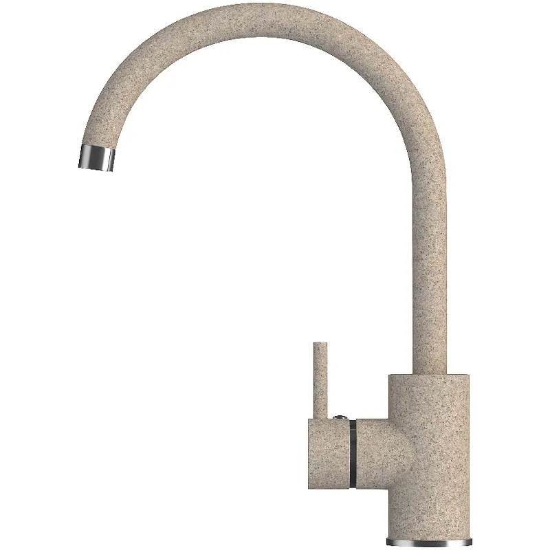 Смеситель для кухни Polygran Элара №302 349514.Характеристики: Цвет: песочный. Покрытие: композит. Материал: латунь. Управление: однорычажное. Механизм: керамический картридж 40 мм. Тип подводки: гибкая. Стандарт подводки: 1/2. Вращение излива: поворотный. Монтаж: на мойку. Крепление: гайка. В комплекте поставки: Смеситель. Подводка. Набор крепежных элементов.