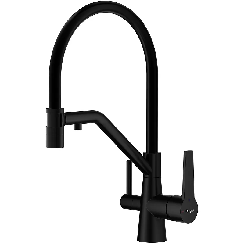 Данный кухонный смеситель от бренда Raglo сочетает в себе стильный дизайн и функциональность. Черный матовый цвет и современный дизайн делают его идеальным выбором для современных кухонь. Смеситель для мойки с однорычажным управлением и поворотным изливом обеспечивает удобство эксплуатации.