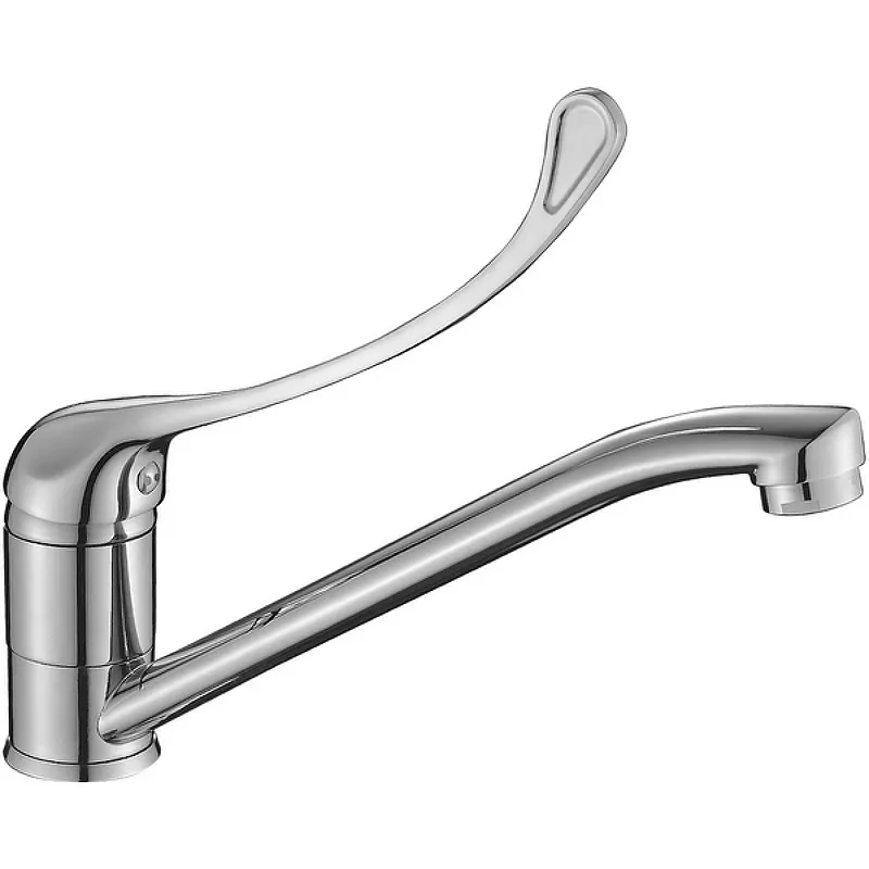 - Удобство использования: Удлиненная ручка позволяет включать и выключать воду локтем, что повышает гигиеничность и удобство.