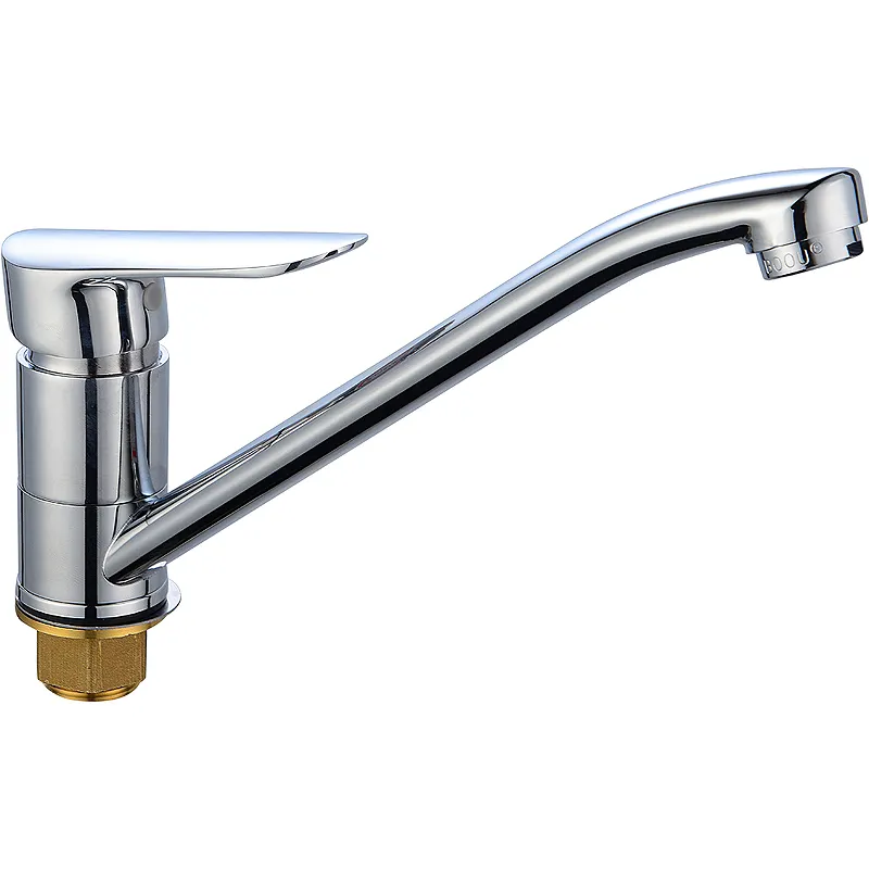 Смеситель для кухни Ростовская Мануфактура Сантехники Boou B8274-14.Характеристики: Цвет: хром. Материал: латунь. Управление: рычажное. Механизм: керамический картридж 35 мм. Излив: фиксированный. Тип подводки: гибкая в металлической оплетке, длиной 60 см. Монтаж: на мойку, на столешницу. Отверстий для монтажа: 1. Аэратор. Тип крепления: гайка. Пропускная способность: до 22 л/мин. Стандарт подводки: G 1/2. В комплекте поставки: Смеситель. Гибкая подводка. Комплект креплений. Паспорт.
