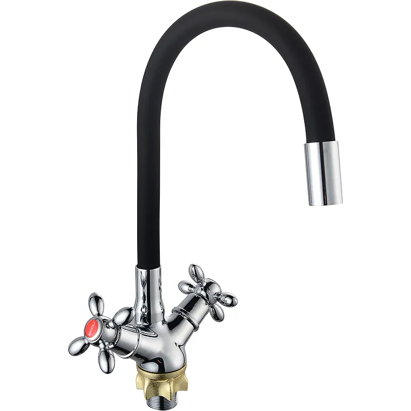 Смеситель для кухни Ростовская Мануфактура Сантехники Boou BA5318-1F-E352A-B702.Характеристики: Цвет: черный, хром. Материал: латунь. Управление: двухвентильное. Механизм: керамическая кран-букса. Излив: гибкий. Тип подводки: гибкая в металлической оплетке, длиной 60 см. Монтаж: на мойку, на столешницу. Отверстий для монтажа: 1. Аэратор. Тип крепления: гайка. Пропускная способность: до 25 л/мин. Стандарт подводки: G 1/2. В комплекте поставки: Смеситель. Гибкая подводка. Комплект креплений. Паспорт.