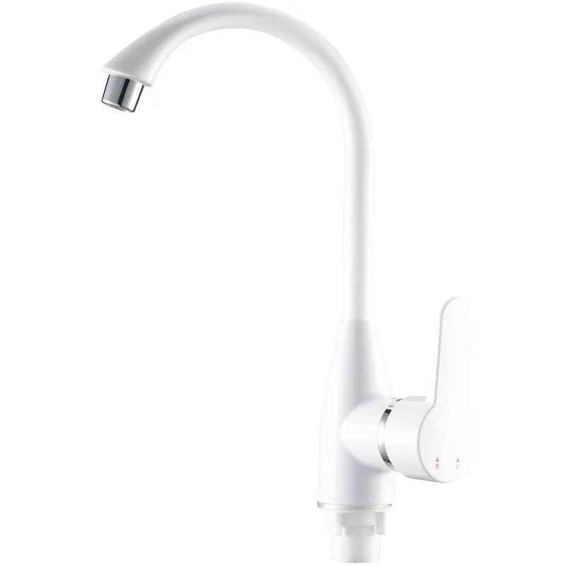Смеситель для кухни Ростовская Мануфактура Сантехники PL5-017F.Характеристики: Цвет: белый. Материал: ABS-пластик. Управление: однорычажное. Механизм: керамический картридж 40 мм. Излив: поворотный. Аэратор. Пропускная способность: до 25 л/мин. Тип подводки: гибкая. Стандарт подводки: G1/2. Отверстия для монтажа: 1. Тип крепления: гайка. Монтаж: на мойку/на столешницу. В комплекте поставки: Смеситель для кухни. Гибкая подводка. Комплект креплений. Паспорт.