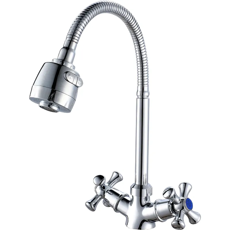 Смеситель для кухни Ростовская Мануфактура Сантехники SL138-279F.Характеристики: Цвет: хром. Материал: цинковый сплав. Управление: двухвентильное. Механизм: керамическая кран-букса. Излив: поворотный, гибкий. Режим: душ. Стандарт подводки: G1/2. Тип подводки: гибкая в металлической оплетке, длиной 400 мм. Пропускная способность: до 25 л/мин. Аэратор. Тип крепления: гайка. Монтаж: на мойку, на столешницу. В комплекте поставки: Смеситель для кухни. Гибкая подводка. Комплект креплений. Паспорт.