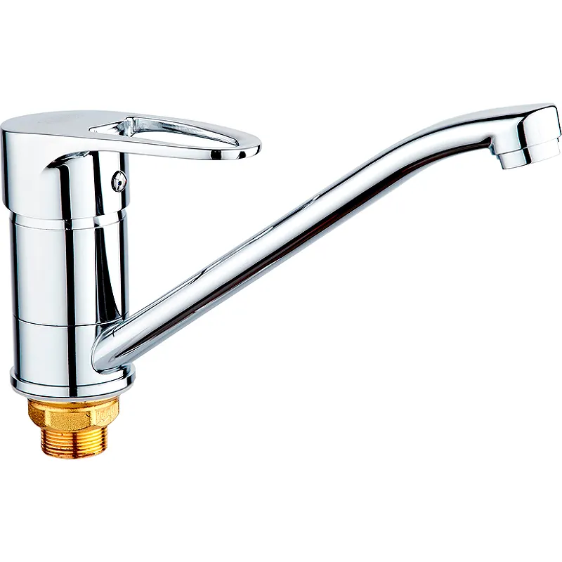 Смеситель для кухни Ростовская Мануфактура Сантехники SL52-004FB-25.Смеситель для кухни с длинным поворотным изливом станет функциональным и стильным решением для любого интерьера.Характеристики: Цвет: хром. Материал: цинковый сплав. Управление: однорычажное. Излив: поворотный. Механизм работы: керамический картридж, 35 мм. Крепление: гайка. Аэратор: пластиковый. Стандарт подводки: G 1/2. Монтаж: на мойку. В комплекте поставки: Смеситель. Гибкая подводка.