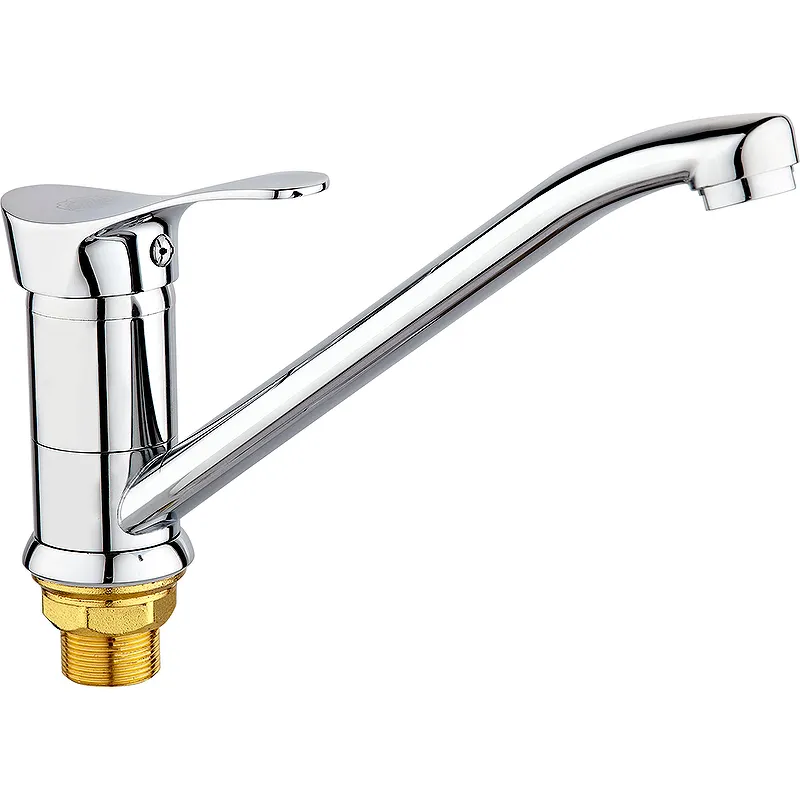 Смеситель для кухни Ростовская Мануфактура Сантехники SL86-004FBS-25.Характеристики: Цвет: хром. Материал: цинковый сплав. Управление: однорычажное. Излив: длинный поворотный. Механизм работы: керамический картридж, 35 мм. Крепление: гайка. Аэратор: пластиковый. Монтаж: на мойку. В комплекте поставки: Смеситель. Гибкая подводка.