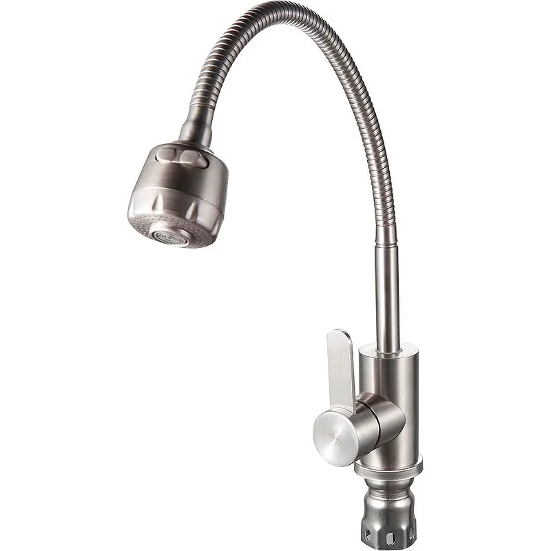 Смеситель для кухни Ростовская Мануфактура Сантехники SUS124-016F.Функциональный однорычажный смеситель для кухни с гибким изливом и насадкой распылителем станет не заменимым помощником на кухне.Характеристики: Цвет: нержавеющая сталь. Материал: нержавеющая сталь. Управление: однорычажное. Излив: высокий гибкий. Механизм работы: керамический картридж, 35 мм. Крепление: гайка. Стандарт подключения: G 1/2. Монтаж: на мойку. В комплекте поставки: Смеситель. Гибкая подводка.