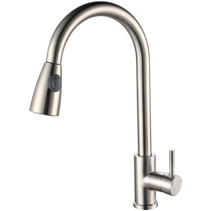 Смеситель для кухни Ростовская Мануфактура Сантехники SUS124-017F-2 с выдвижным изливом.Характеристики: Цвет: нержавеющая сталь. Материал: нержавеющая сталь. Поверхность: матовая. Механизм: керамический картридж 35 мм. Управление: рычажное. Излив: поворотный, выдвижной. Длина шланга: 1700 мм. Стандарт подводки: 1/2. Тип подводки: гибкая. Монтаж: на мойку, столешницу. Отверстий для монтажа: 1. Аэратор. Пропускная способность: до 22 л/мин. В комплекте поставки: Смеситель. Гибкая подводка. Комплект креплений. Шланг вытяжной. Лейка. Паспорт.