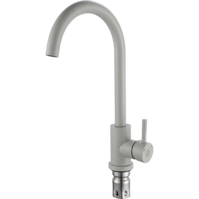 Смеситель для кухни Ростовская Мануфактура Сантехники SUS124GY-017F.Характеристики: Цвет: серый. Материал: нержавеющая сталь. Механизм: керамический картридж, 35 мм. Управление: рычажное. Излив: поворотный. Стандарт подводки: G1/2. Тип подводки: гибкая, в металлической оплетке, длинной 40 см. Монтаж: на мойку, на столешницу. С аэратором. В комплекте поставки: Смеситель. Гибкая подводка. Комплект креплений. Паспорт.