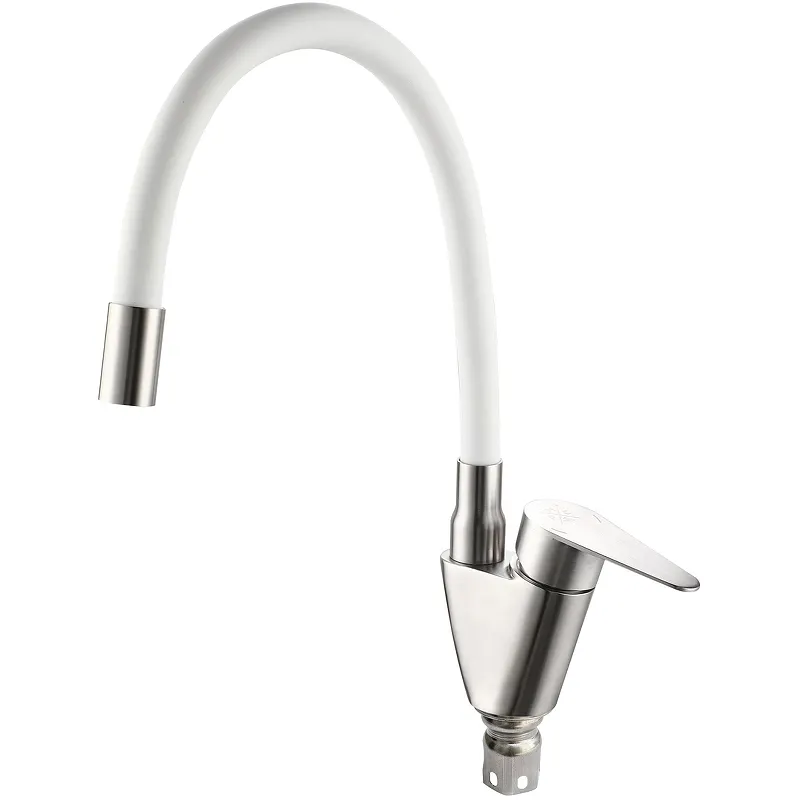 Смеситель для кухни Ростовская Мануфактура Сантехники SUS126W-016F.Характеристики: Цвет корпуса: нержавеющая сталь. Цвет излива: белый. Материал: нержавеющая сталь. Управление: однорычажное. Механизм: керамический картридж 35 мм. Излив: поворотный, гибкий. Аэратор. Пропускная способность: до 22 л/мин. Функция экономии воды. Тип подводки: гибкая в металлической оплетке, длиной 600 мм. Стандарт подводки: G1/2. Отверстия для монтажа: 1. Тип крепления: гайка. Монтаж: на мойку/на столешницу. В комплекте поставки: Смеситель для кухни. Гибкая подводка. Комплект креплений. Паспорт.