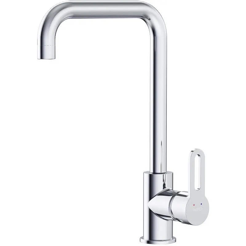 Смеситель для кухни Royce Aura RCM-121101CR.Характеристики: Цвет: хром. Материал: латунь. Управление: однорычажное. Механизм: керамический картридж 35 мм. Излив: поворотный. Стандарт подводки: G 1/2. Тип подводки: гибкая. Аэратор Neoperl. Отверстия для монтажа: 1. Монтаж: на мойку/на столешницу. В комплекте поставки: Смеситель для кухни. Гибкая подводка. Аэратор. Комплект крепления.
