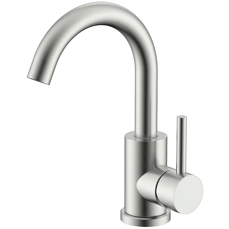 Смеситель для кухни Splenka S201.13.05.Характеристики: Цвет: сатин. Материал: нержавеющая сталь. Управление: однорычажное. Механизм: керамический картридж. Излив: поворотный. Стандарт подводки: G 1/2. Тип подводки: гибкая. Аэратор. Отверстия для монтажа: 1. Монтаж: на мойку. В комплекте поставки: Смеситель для кухни. Гибкая подводка. Комплект креплений.