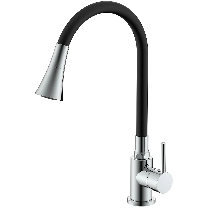 Смеситель для кухни Splenka S201.4306.Характеристики: Цвет корпуса: хром. Цвет излива: черный. Материал: нержавеющая сталь. Управление: однорычажное. Механизм: керамический картридж. Излив: поворотный, гибкий. количество режимов струи: 2. Стандарт подводки: G 1/2. Тип подводки: гибкая. Аэратор. Отверстия для монтажа: 1. Монтаж: на мойку/на столешницу. В комплекте поставки: Смеситель для кухни. Гибкая подводка. Комплект креплений.