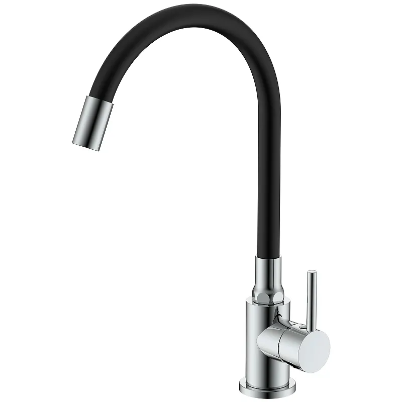 Смеситель для кухни Splenka S201.4406.Характеристики: Цвет корпуса: хром. Цвет излива: черный. Материал: нержавеющая сталь. Управление: однорычажное. Механизм: керамический картридж. Излив: поворотный, гибкий. Стандарт подводки: G 1/2. Тип подводки: гибкая. Аэратор. Отверстия для монтажа: 1. Монтаж: на мойку/на столешницу. В комплекте поставки: Смеситель для кухни. Гибкая подводка. Комплект креплений.