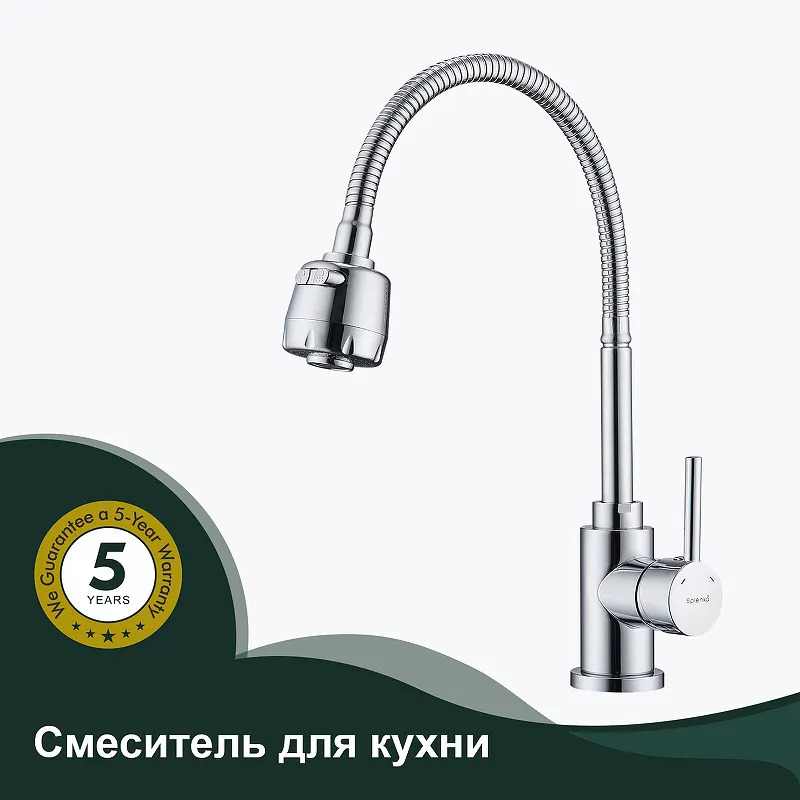 Смеситель для кухни Splenka S201.47.Характеристики: Цвет: хром. Материал: нержавеющая сталь. Управление: однорычажное. Механизм: керамический картридж. Излив: поворотный, гибкий. количество режимов струи: 2. Стандарт подводки: G 1/2. Тип подводки: гибкая. Аэратор. Отверстия для монтажа: 1. Монтаж: на мойку/на столешницу. В комплекте поставки: Смеситель для кухни. Гибкая подводка. Комплект креплений.