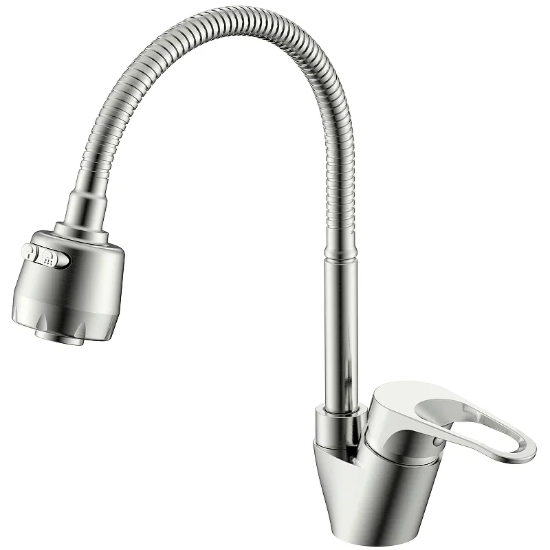 Смеситель для кухни Splenka S202.47.05.Характеристики: Цвет: сатин. Материал: нержавеющая сталь. Управление: однорычажное. Механизм: керамический картридж. Излив: поворотный, гибкий. количество режимов струи: 2. Стандарт подводки: G 1/2. Тип подводки: гибкая. Аэратор. Отверстия для монтажа: 1. Монтаж: на мойку/на столешницу. В комплекте поставки: Смеситель для кухни. Гибкая подводка. Комплект креплений.