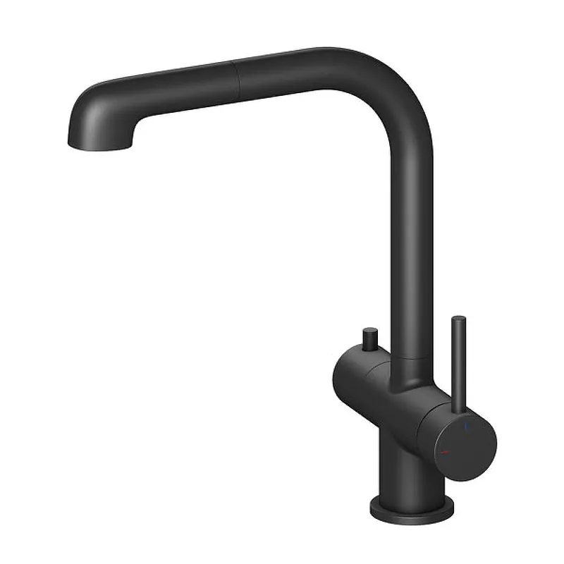 - Функциональность: Выдвижной излив позволяет удобно использовать смеситель для кухонных нужд.