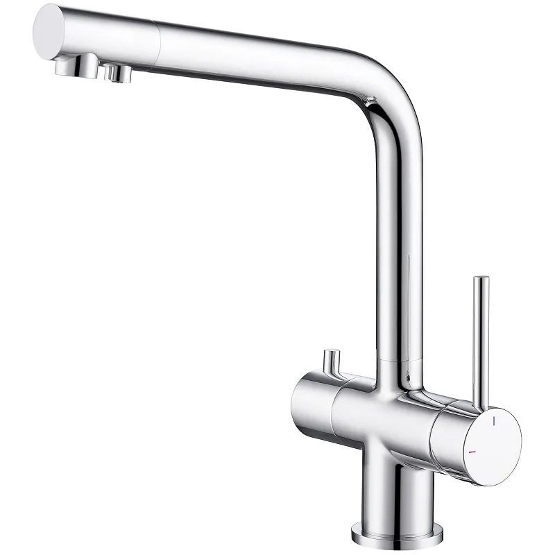 Смеситель для кухни Timo Saona 2396/00F с подключением фильтра для питьевой воды.Характеристики: Цвет: хром. Поверхность: глянцевая. Материал: латунь класса А. Управление: однорычажное. Механизм: керамический картридж 35 мм. Стандарт подводки: G1/2. Излив: поворотный. Система подключения фильтрованной воды. Монтаж: на мойку/столешницу. Аэратор. В комплекте поставки: Смеситель для кухни. Гибкая подводка: 3 шт. Адаптер для соединения с трубкой фильтра. Резиновое кольцо: 2 шт. Металлическое кольцо. Гайка с фиксирующими винтами. Инструкция.