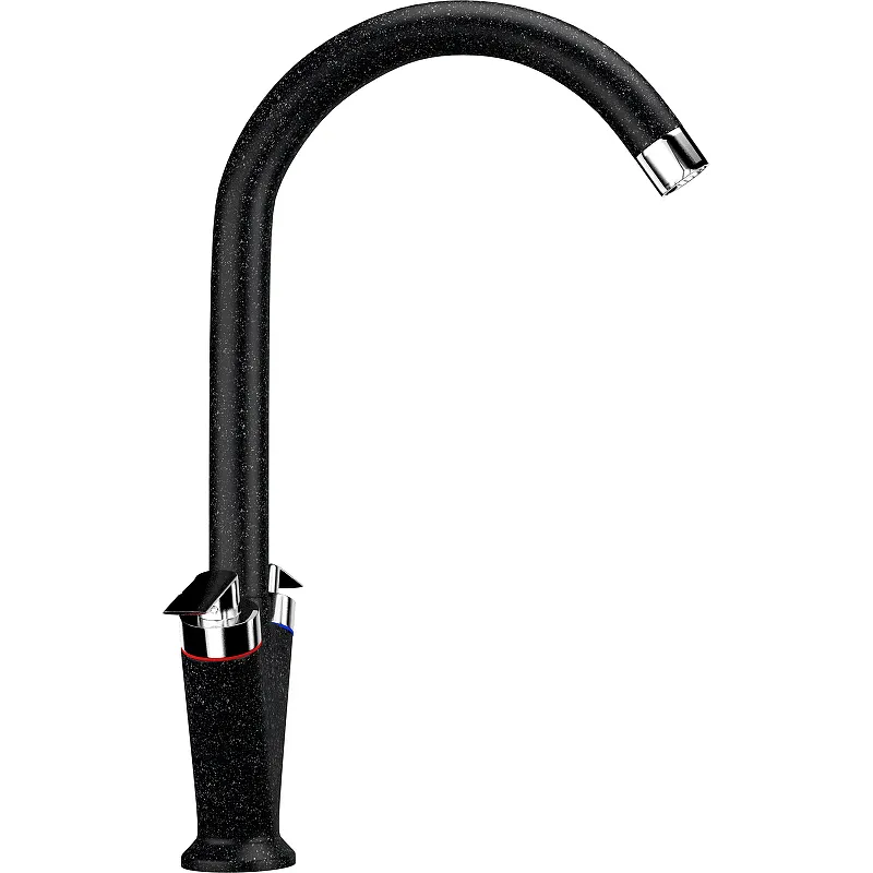 Смеситель для кухни Ulgran Classic U-011-308.Двухрычажный смеситель с округлым изливом для мойки из искусственного камня. Ulgran U-011 - смеситель с двумя независимыми кран-буксами для горячей и холодной воды соответственно.Характеристики: Цвет: черный. Материал: латунь. Покрытие: под искусственный камень. Управление: двухвентильное. Излив: поворотный (вращение на 360 градусов). Механизм: керамический картридж 40 мм. Тип подводки: гибкая 450 мм. Стандарт подводки: 1/2. Минимальное давление: 0.5 бар. Рекомендованное рабочее давление: 3 бар. Максимальное давление: 5 бар. Максимальная рабочая температура: 70 градусов. Аэратор для экономии воды. Монтаж: на мойку. В комплекте поставки: Смеситель в фирменной коробке. Гибкая подводка. Керамический картридж. Крепление. Технический паспорт, гарантийный талон.