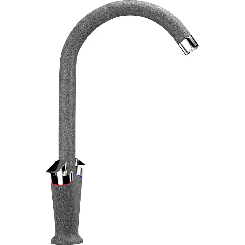 Смеситель для кухни Ulgran Classic U-011-309.Двухрычажный смеситель с округлым изливом для мойки из искусственного камня. Ulgran U-011 - смеситель с двумя независимыми кран-буксами для горячей и холодной воды соответственно.Характеристики: Цвет: темно-серый. Материал: латунь. Покрытие: под искусственный камень. Управление: двухвентильное. Излив: поворотный (вращение на 360 градусов). Механизм: керамический картридж 40 мм. Тип подводки: гибкая 450 мм. Стандарт подводки: 1/2. Минимальное давление: 0.5 бар. Рекомендованное рабочее давление: 3 бар. Максимальное давление: 5 бар. Максимальная рабочая температура: 70 градусов. Аэратор для экономии воды. Монтаж: на мойку. В комплекте поставки: Смеситель в фирменной коробке. Гибкая подводка. Керамический картридж. Крепление. Технический паспорт, гарантийный талон.