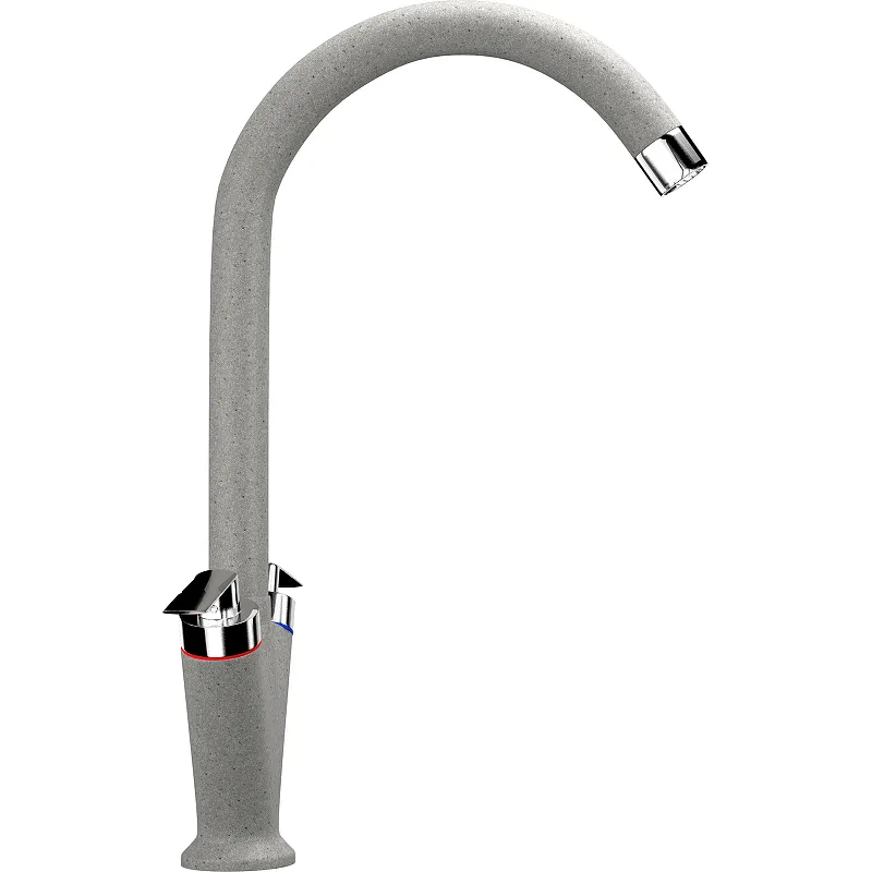 Смеситель для кухни Ulgran Classic U-011-310.Двухрычажный смеситель с округлым изливом для мойки из искусственного камня. Ulgran U-011 - смеситель с двумя независимыми кран-буксами для горячей и холодной воды соответственно.Характеристики: Цвет: серый. Материал: латунь. Покрытие: под искусственный камень. Управление: двухвентильное. Излив: поворотный (вращение на 360 градусов). Механизм: керамический картридж 40 мм. Тип подводки: гибкая 450 мм. Стандарт подводки: 1/2. Минимальное давление: 0.5 бар. Рекомендованное рабочее давление: 3 бар. Максимальное давление: 5 бар. Максимальная рабочая температура: 70 градусов. Аэратор для экономии воды. Монтаж: на мойку. В комплекте поставки: Смеситель в фирменной коробке. Гибкая подводка. Керамический картридж. Крепление. Технический паспорт, гарантийный талон.