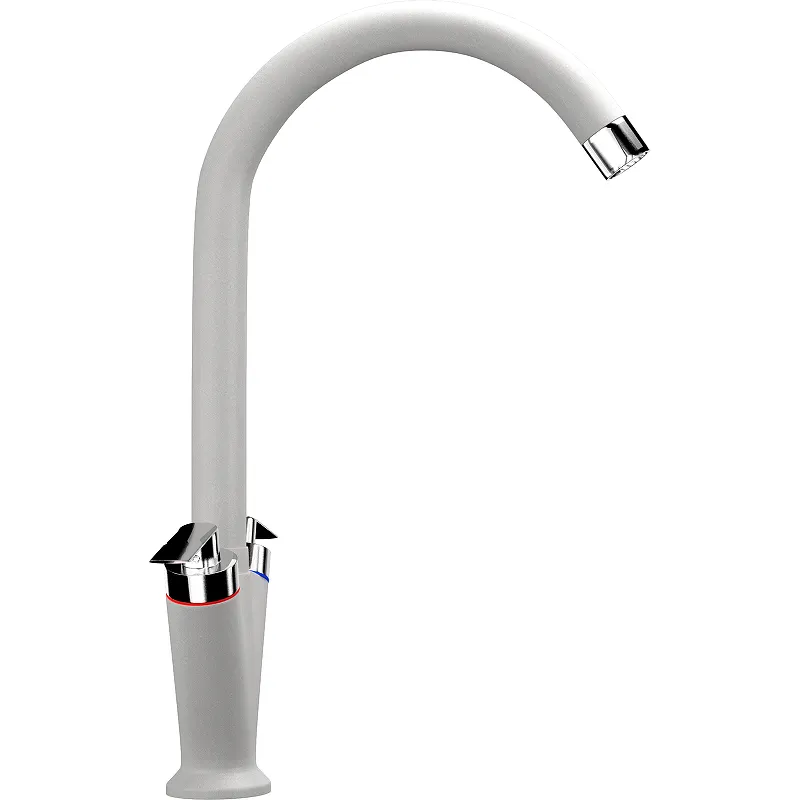 Смеситель для кухни Ulgran Classic U-011-341.Двухрычажный смеситель с округлым изливом для мойки из искусственного камня. Ulgran U-011 - смеситель с двумя независимыми кран-буксами для горячей и холодной воды соответственно.Характеристики: Цвет: ультра-белый. Материал: латунь. Покрытие: под искусственный камень. Управление: двухвентильное. Излив: поворотный (вращение на 360 градусов). Механизм: керамический картридж 40 мм. Тип подводки: гибкая 450 мм. Стандарт подводки: 1/2. Минимальное давление: 0.5 бар. Рекомендованное рабочее давление: 3 бар. Максимальное давление: 5 бар. Максимальная рабочая температура: 70 градусов. Аэратор для экономии воды. Монтаж: на мойку. В комплекте поставки: Смеситель в фирменной коробке. Гибкая подводка. Керамический картридж. Крепление. Технический паспорт, гарантийный талон.