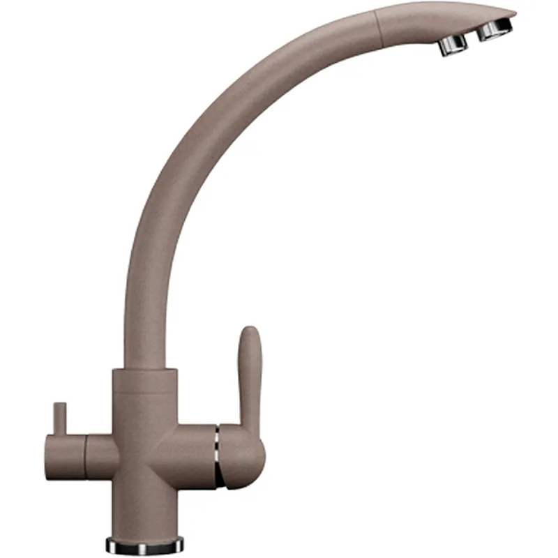 Смеситель для кухни Ulgran Classic U-017-302.Характеристики: Цвет: песочный. Материал: латунь. Покрытие: под искусственный камень. Управление: однорычажное. Излив: поворотный (вращение на 360 градусов). Механизм: керамический картридж Wanhai 35 мм, кран-букса с керамическими пластинами (для фильтрованной воды). Тип подводки: гибкая подводка 450 мм. Минимальное давление: 0.5 бар. Рабочее давление: 2-4 бар. Максимальное давление: 6 бар. С дополнительным изливом для фильтрованной воды. Аэратор. Монтаж: на мойку. В комплекте поставки: Смеситель в фирменной коробке. Гибкая подводка 450 мм. Керамический картридж Wanhai. Крепление. Дополнительный излив для фильтрованной воды (кран-букса с керамическими пластинами). Набор для подсоединения фильтра питьевой воды (гибкая подводка и переходник-цанга). Технический паспорт, гарантийный талон.