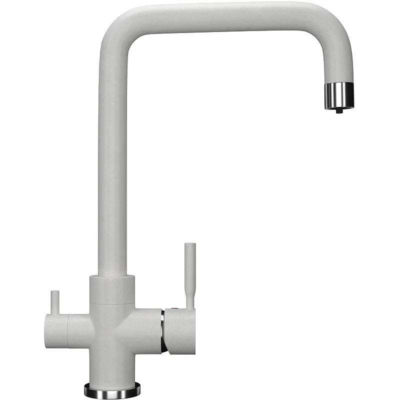 Смеситель для кухни Ulgran Classic U-019-341.Характеристики: Цвет: ультра-белый. Материал: латунь. Управление: однорычажное. Излив: поворотный (вращение на 360 градусов) с каналом для питьевой воды. Механизм: керамический картридж Wanhai 35 мм. Для крана с питьевой водой: кран-букса с керамическими пластинами. Тип подводки: гибкая подводка. Стандарт подводки: 1/2. Минимальное давление: 0.5 бар. Рабочее давление: 2-4 бар. Максимальное давление: 6 бар. Аэратор. Монтаж: на мойку / на столешницу. В комплекте поставки: Смеситель в фирменной коробке. Гибкая подводка 450 мм. Керамический картридж Wanhai. Крепление. Кран-букса с керамическими пластинами для дополнительного излива для фильтрованной воды. Набор для подсоединения фильтра питьевой воды (гибкая подводка + переходник-цанга). Технический паспорт, гарантийный талон.