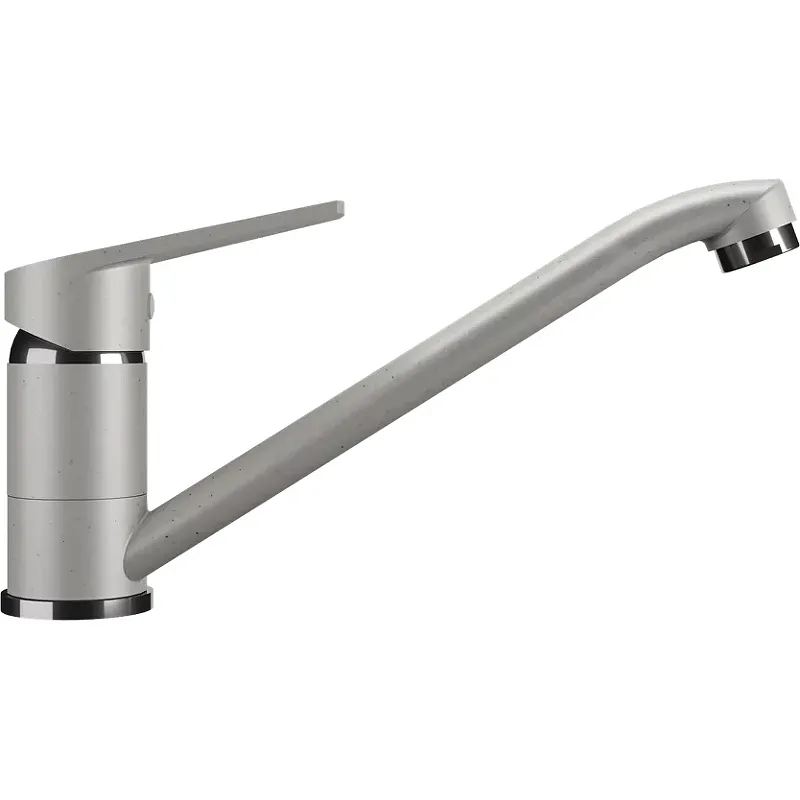 Смеситель для кухни Ulgran Practik PR-01-001.Practik PR-01 - удобный классический кухонный смеситель с низким поворотным изливом.Материал корпуса выполнен из высококачественной латуни, а окрашивание под искусственный камень в цвет мойки Practik выполняется на собственном производстве, что позволяет идеально попасть в фирменный цвет Practik.В качестве керамического картриджа используется известный бренд Wanhai диаметром 35 мм с высокой пропускной способностью в 500 тысяч циклов открывания-закрывания.На подвижные части картриджа Wanhai нанесена специальная невымываемая силиконовая смазка, а керамические пластины изготовлены из 96% оксида алюминия, что, в сочетании с высоким качеством шлифовки, обеспечивает долговечность, надежность, плавность хода рукоятки.Смеситель оборудован съемным пластиковым аэратором для экономии воды и поворотным изливом на 360 градусов.В комплектацию входят: керамический картридж Wanhai, комплект крепежных элементов, технический паспорт и гарантийный талон.Характеристики: Цвет: белый камень. Материал: латунь. Покрытие под искусственный камень. Управление: однорычажное. Механизм: керамический картридж Wanhai 35 мм. Излив: поворотный на 360 градусов. Аэратор. Минимальное давление: 0,5 бар. Тип подводки: гибкая. Стандарт подводки: G 1/2. Отверстие для монтажа: 35 мм. Монтаж: на мойку. В комплекте поставки: Смеситель для кухни в фирменной коробке. Керамический картридж Wanhai. Крепление. Технический паспорт и гарантийный талон.