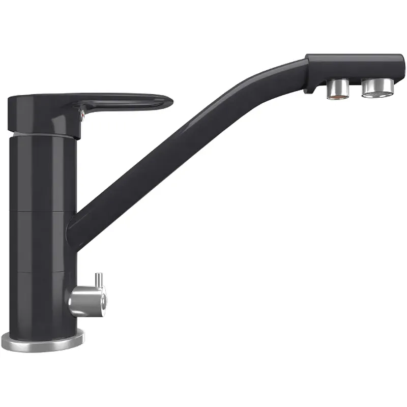 Смеситель для кухни Ulgran Quartz UQ-010-08.Характеристики: Цвет: космос. Материал: латунь. Покрытие под искусственный камень. Управление: однорычажное. Излив: поворотный (вращение на 360 градусов) с каналом для питьевой воды. Механизм: керамический картридж Wanhai 40 мм. Для крана с питьевой водой: кран-букса с керамическими пластинами. Тип подводки: гибкая подводка. Стандарт подводки: 1/2. Минимальное давление: 0.5 бар. Рабочее давление: 2-4 бар. Максимальное давление: 6 бар. Аэратор. Отверстие для монтажа: 35 мм. Монтаж: на мойку. В комплекте поставки: Смеситель в фирменной коробке. Гибкая подводка 450 мм. Керамический картридж Wanhai. Крепление. Кран-букса с керамическими пластинами для дополнительного излива для фильтрованной воды. Набор для подсоединения фильтра питьевой воды (гибкая подводка + переходник-цанга). Технический паспорт, гарантийный талон.