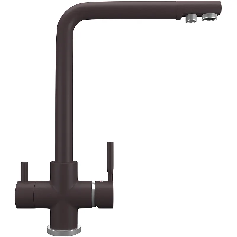 Смеситель для кухни Ulgran Quartz UQ-016-06.Характеристики: Цвет: трюфель. Материал: латунь. Покрытие под искусственный камень. Управление: однорычажное. Излив: поворотный (вращение на 360 градусов) с каналом для питьевой воды. Механизм: керамический картридж Wanhai 35 мм. Для крана с питьевой водой: кран-букса с керамическими пластинами. Тип подводки: гибкая подводка. Стандарт подводки: 1/2. Минимальное давление: 0.5 бар. Рабочее давление: 2-4 бар. Максимальное давление: 6 бар. Аэратор. Отверстие для монтажа: 35 мм. Монтаж: на мойку, на столешницу. В комплекте поставки: Смеситель в фирменной коробке. Гибкая подводка 450 мм. Керамический картридж Wanhai. Крепление. Кран-букса с керамическими пластинами для дополнительного излива для фильтрованной воды. Набор для подсоединения фильтра питьевой воды (гибкая подводка + переходник-цанга). Технический паспорт, гарантийный талон.