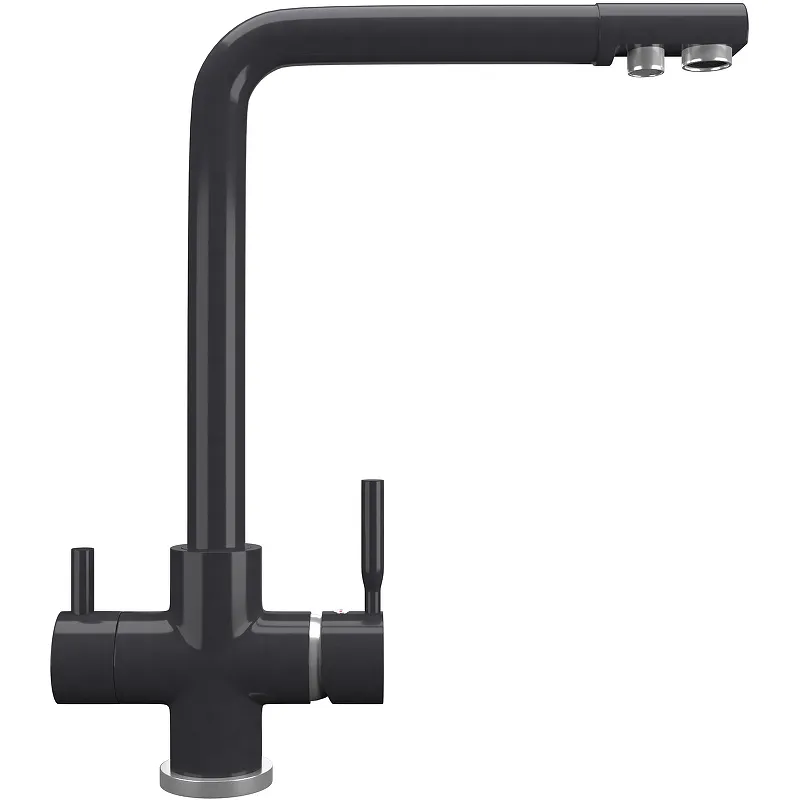Смеситель для кухни Ulgran Quartz UQ-016-08.Характеристики: Цвет: космос. Материал: латунь. Покрытие под искусственный камень. Управление: однорычажное. Излив: поворотный (вращение на 360 градусов) с каналом для питьевой воды. Механизм: керамический картридж Wanhai 35 мм. Для крана с питьевой водой: кран-букса с керамическими пластинами. Тип подводки: гибкая подводка. Стандарт подводки: 1/2. Минимальное давление: 0.5 бар. Рабочее давление: 2-4 бар. Максимальное давление: 6 бар. Аэратор. Отверстие для монтажа: 35 мм. Монтаж: на мойку, на столешницу. В комплекте поставки: Смеситель в фирменной коробке. Гибкая подводка 450 мм. Керамический картридж Wanhai. Крепление. Кран-букса с керамическими пластинами для дополнительного излива для фильтрованной воды. Набор для подсоединения фильтра питьевой воды (гибкая подводка + переходник-цанга). Технический паспорт, гарантийный талон.