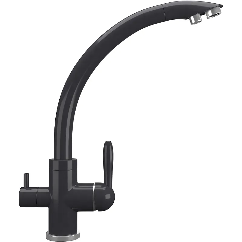 Смеситель для кухни Ulgran Quartz UQ-017-08.Характеристики: Цвет: космос. Материал: латунь. Покрытие под искусственный камень. Управление: однорычажное. Излив: поворотный (вращение на 360 градусов) с каналом для питьевой воды. Механизм: керамический картридж Wanhai 35 мм. Для крана с питьевой водой: кран-букса с керамическими пластинами. Тип подводки: гибкая подводка. Стандарт подводки: 1/2. Минимальное давление: 0.5 бар. Рабочее давление: 2-4 бар. Максимальное давление: 6 бар. Аэратор. Отверстие для монтажа: 35 мм. Монтаж: на мойку, на столешницу. В комплекте поставки: Смеситель в фирменной коробке. Гибкая подводка 450 мм. Керамический картридж Wanhai. Крепление. Кран-букса с керамическими пластинами для дополнительного излива для фильтрованной воды. Набор для подсоединения фильтра питьевой воды (гибкая подводка + переходник-цанга). Технический паспорт, гарантийный талон.
