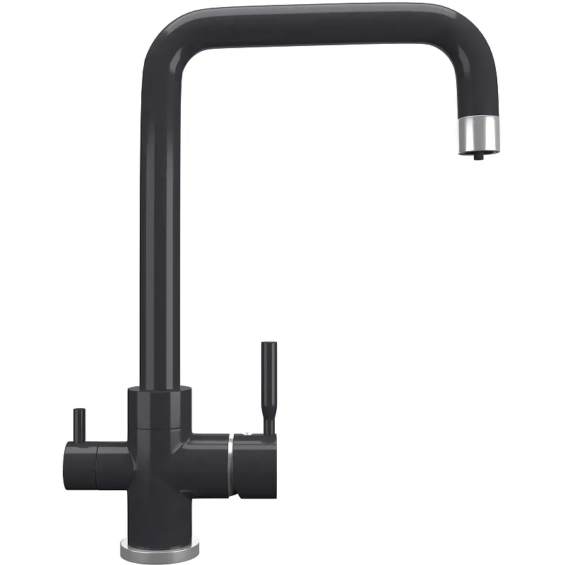 Смеситель для кухни Ulgran Quartz UQ-019-08.Характеристики: Цвет: космос. Материал: латунь. Покрытие под искусственный камень. Управление: однорычажное. Излив: поворотный (вращение на 360 градусов) с каналом для питьевой воды. Механизм: керамический картридж Wanhai 35 мм. Для крана с питьевой водой: кран-букса с керамическими пластинами. Тип подводки: гибкая подводка. Стандарт подводки: 1/2. Минимальное давление: 0.5 бар. Рабочее давление: 2-4 бар. Максимальное давление: 6 бар. Аэратор. Отверстие для монтажа: 35 мм. Монтаж: на мойку, на столешницу. В комплекте поставки: Смеситель в фирменной коробке. Гибкая подводка 450 мм. Керамический картридж Wanhai. Крепление. Кран-букса с керамическими пластинами для дополнительного излива для фильтрованной воды. Набор для подсоединения фильтра питьевой воды (гибкая подводка + переходник-цанга). Технический паспорт, гарантийный талон.