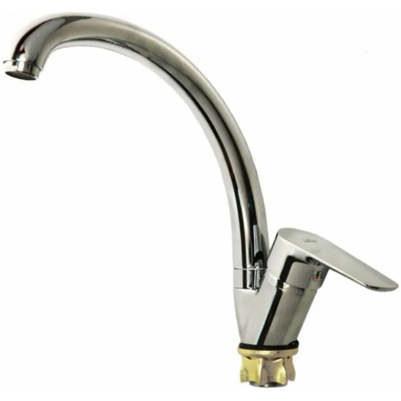 Смеситель для кухни Viko V-4104.Характеристики: Цвет: хром. Материал: латунь. Керамический картридж. Управление: однорычажное. Поворотный излив. Монтаж: на мойку. Стандарт подводки: G 1/2. Тип подводки: гибкая. Крепление: латунная гайка. В комплекте поставки: Смеситель. Гибкая подводка. Крепление.