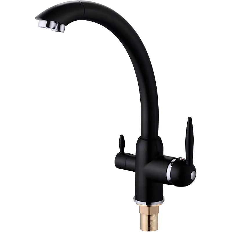 Смеситель для кухни Viko V-5224 с краном для питьевой воды.Характеристики: Цвет: черный мрамор. Материал: латунь. Механизм: керамический картридж. Управление: однорычажное. Излив: поворотный, с каналом для питьевой воды. Стандарт подводки: G 1/2. Монтаж: на мойку. Тип подводки: гибкая. Тип крепления: латунная гайка. В комплекте поставки: Смеситель. Гибкая подводка. Крепление.
