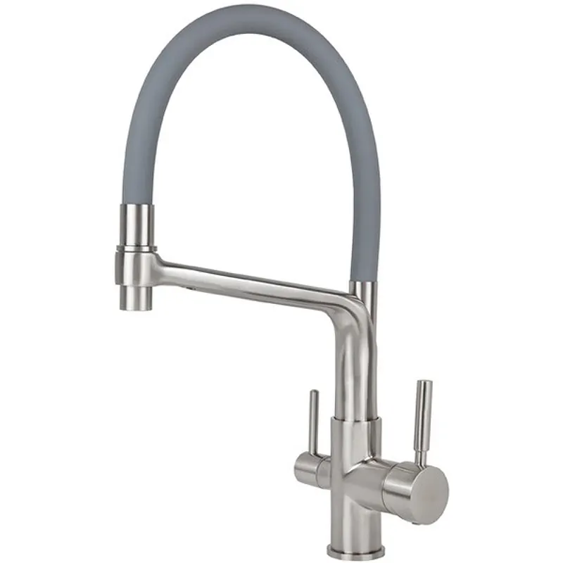 - Современный дизайн кухонного смесителя: Матовая поверхность и стильный серебряно-серый цвет идеально дополнят любой интерьер.