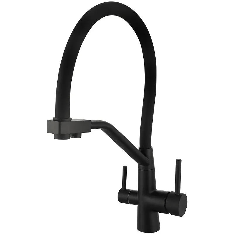 - Элегантный дизайн: Черный матовый цвет и современный стиль делают данный смеситель украшением любой кухни.