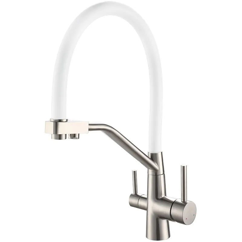 Смеситель для кухни Viko V-5854 Серебро Белый — идеальный выбор для современной кухни. Этот кухонный смеситель с гибким изливом и краном для питьевой воды станет незаменимым помощником в вашем доме. Благодаря современному дизайну и высокому качеству материалов, данный смеситель обеспечивает удобство и стиль.